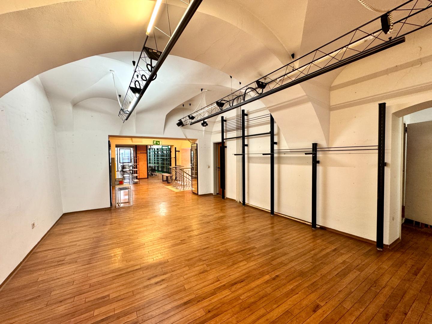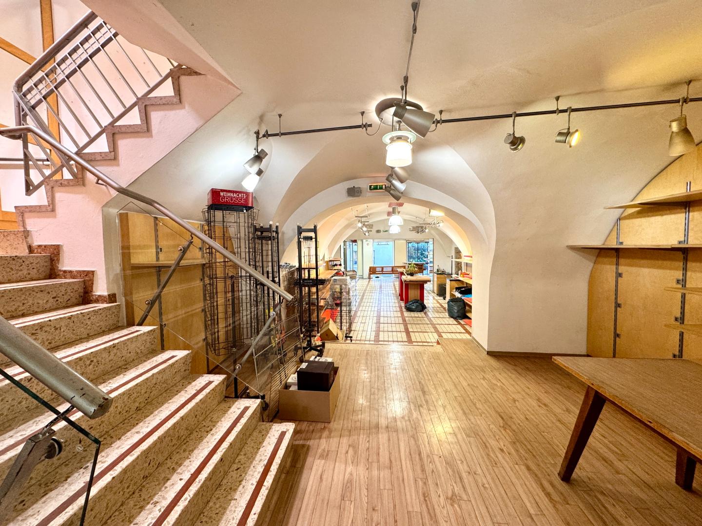 Ein besonderes Highlight ist der überdachte Zugangsbereich, den nur wenige Gebäude dieser Lage bieten. Durch diese architektonische Besonderheit entsteht zusätzlicher Schaufensterraum, der sich ideal zur stilvollen Präsentation Ihrer Produkte nutzen lässt.
