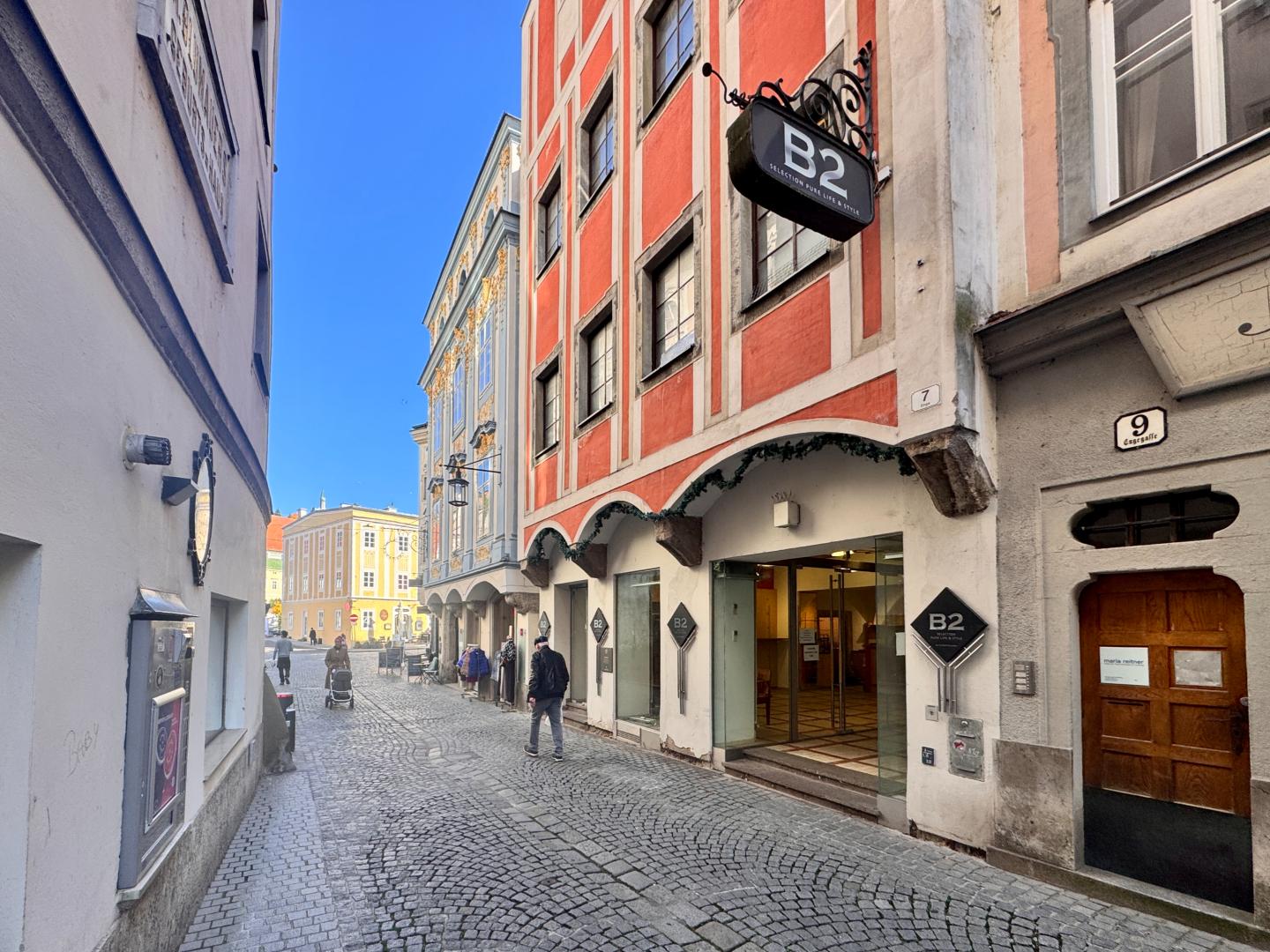Die Immobilie befindet sich in der Enge Gasse 7 und war bis vor Kurzem das Zuhause des bekannten Home-Interieur- und Spirituosen-Geschäfts „B2“, das aufgrund des Ruhestands der Betreiber geschlossen wurde.