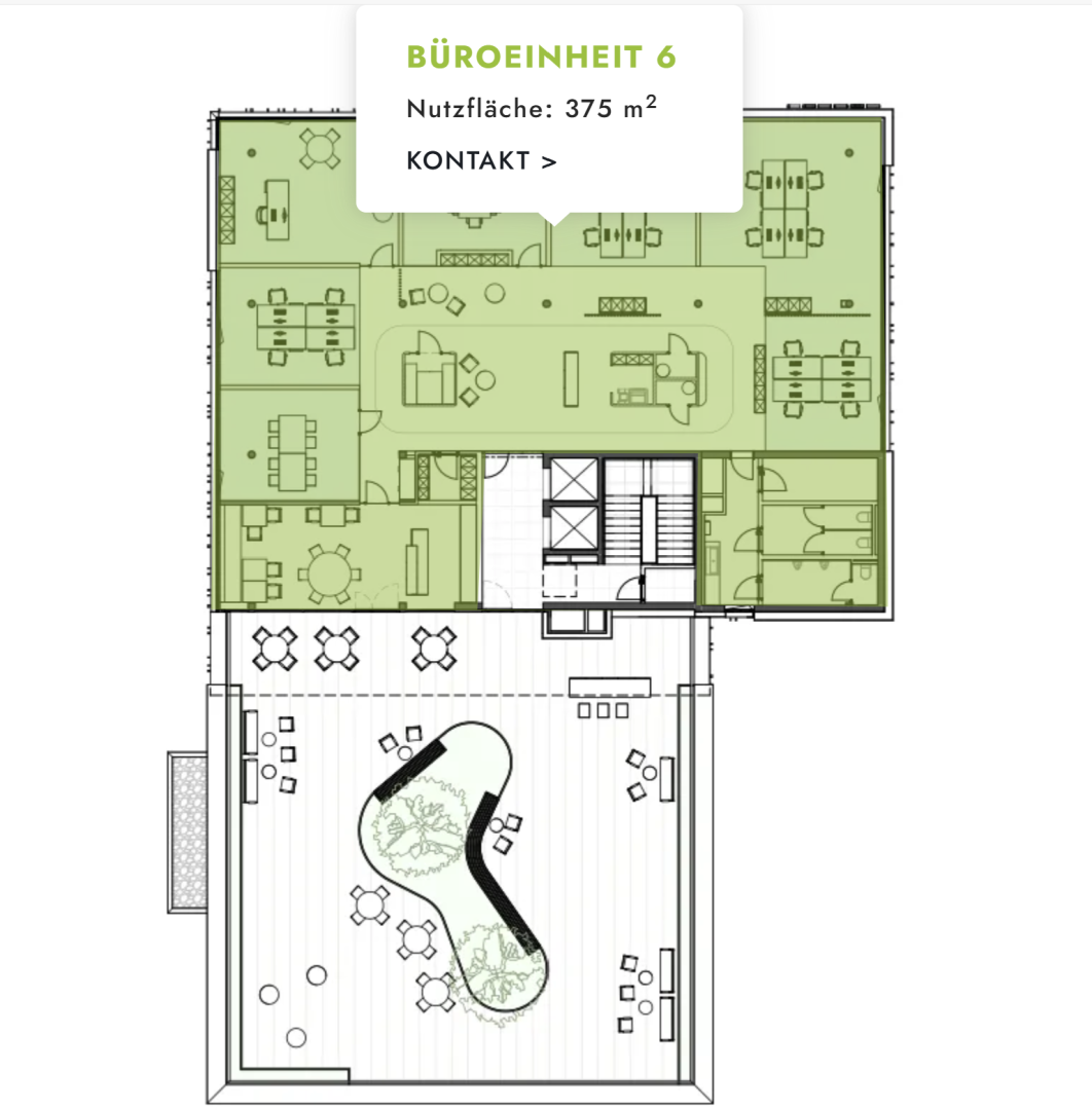 Das zweite noch freie Rooftop-Büro mit 682 m² wird im Campus-Gebäude II zum Mieten und Kaufen angeboten.