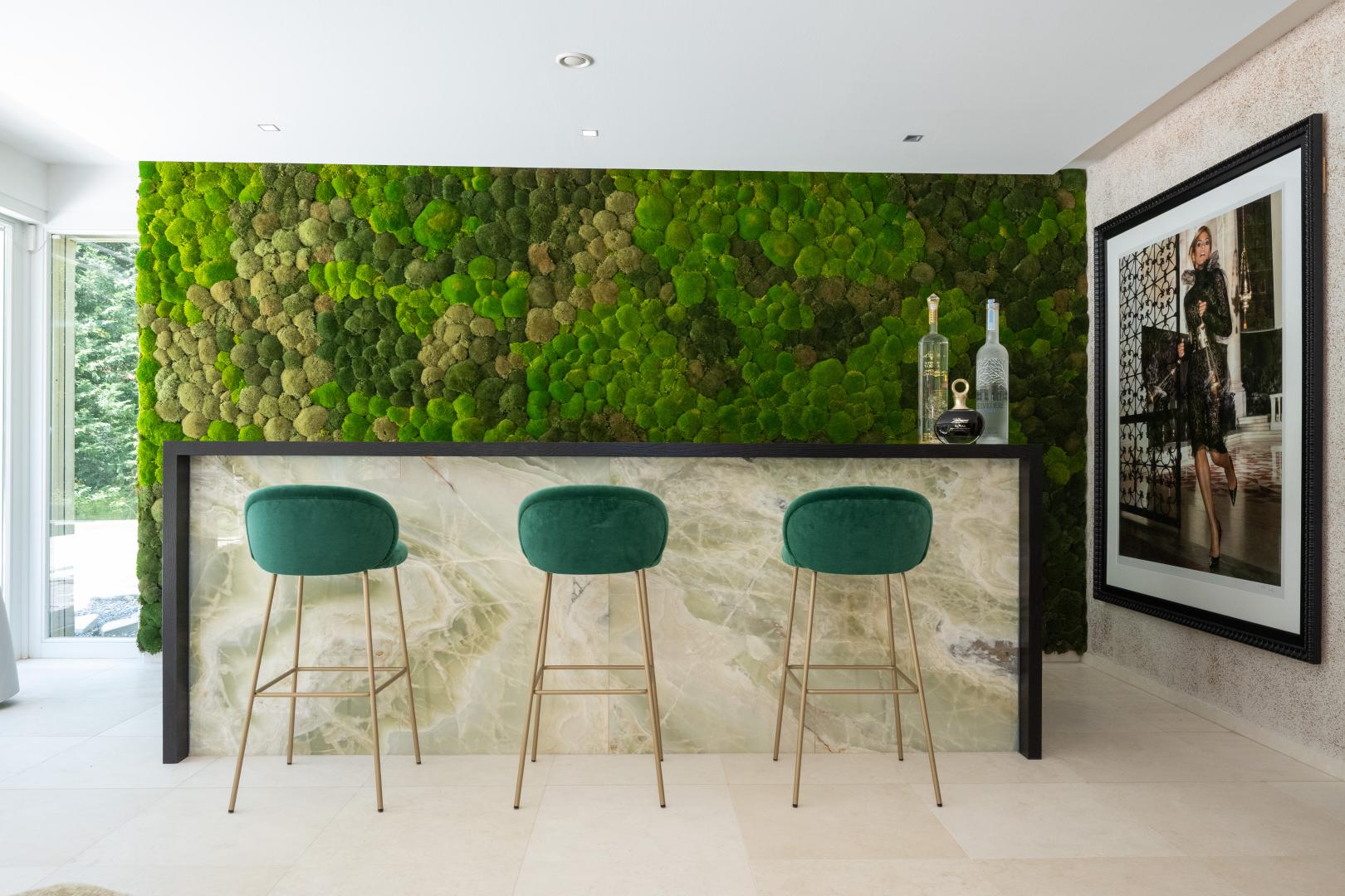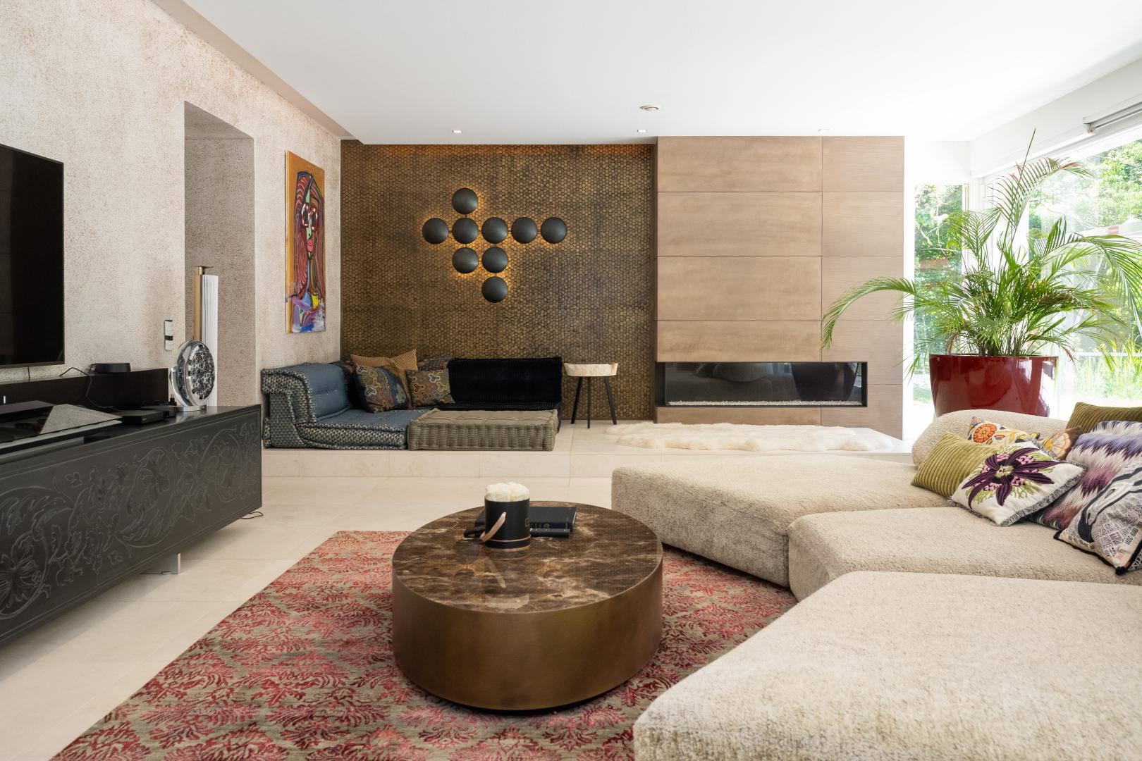 • XL-Wohnzimmer mit Kamin und hinterleuchteter Marmor-Bar