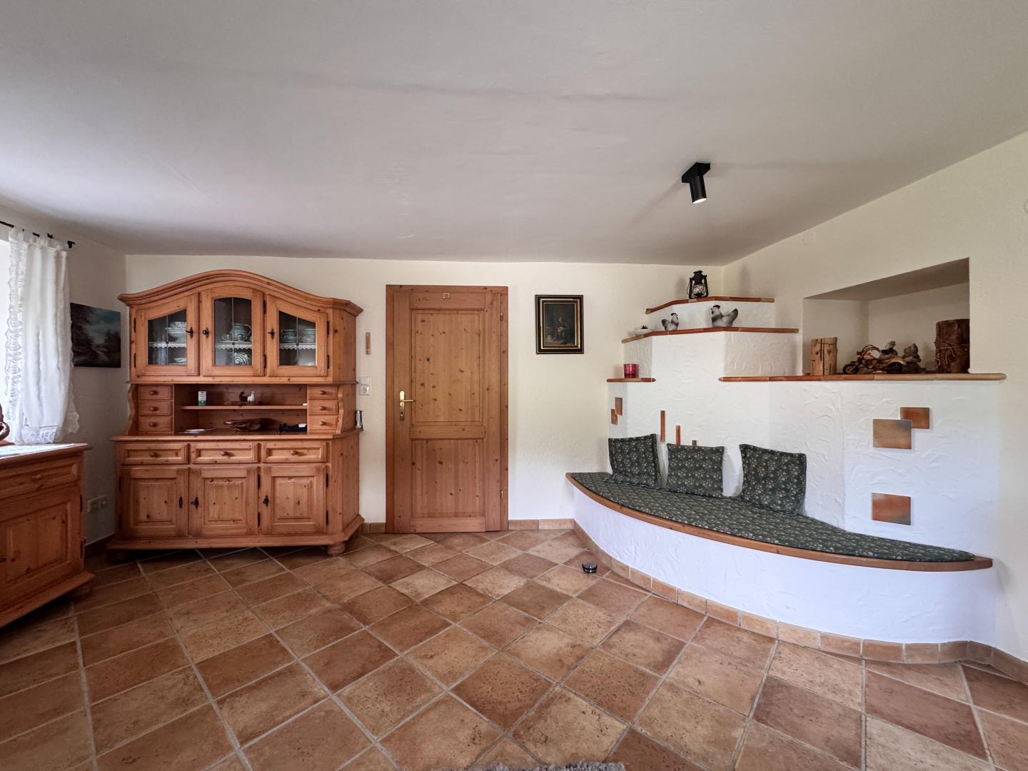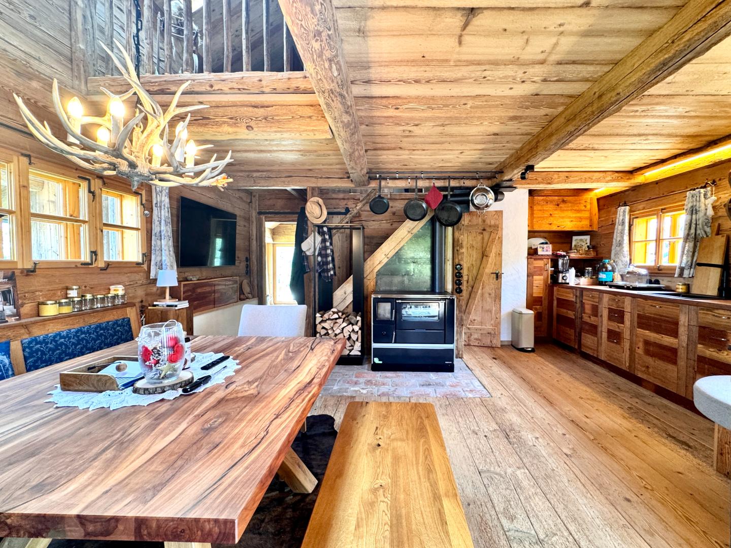 Neben dem Hauptgebäude befindet sich ein liebevoll ausgebaute „Troadkasten“ – ein historisches Getreidelager aus dem Jahr 1850, das 2022 originalgetreu wiederaufgebaut wurde.