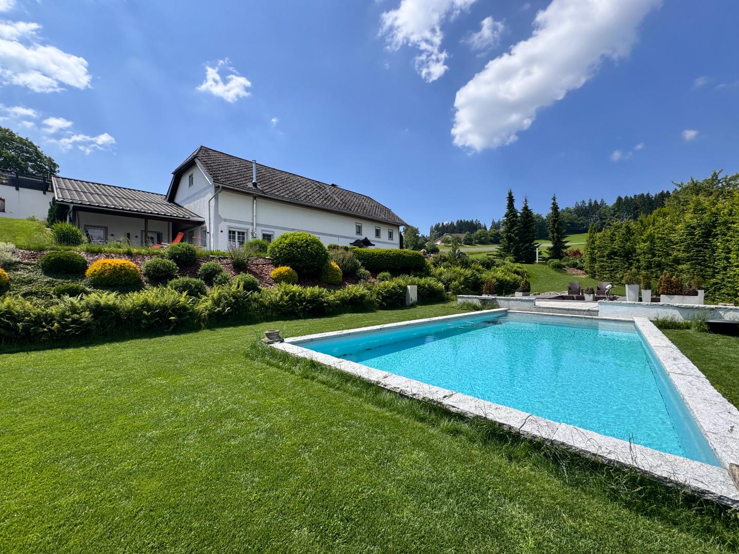 Diese Immobilie vereint Ruhe, Luxus und eine mögliche Selbstversorgung in einzigartiger Weise. Das Anwesen steht ab sofort möbliert und voll ausgestattet zur Verfügung – Sie müssen lediglich Ihre persönlichen Gegenstände mitbringen und können sofort einziehen.